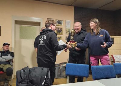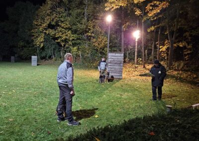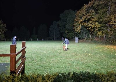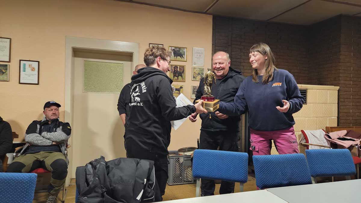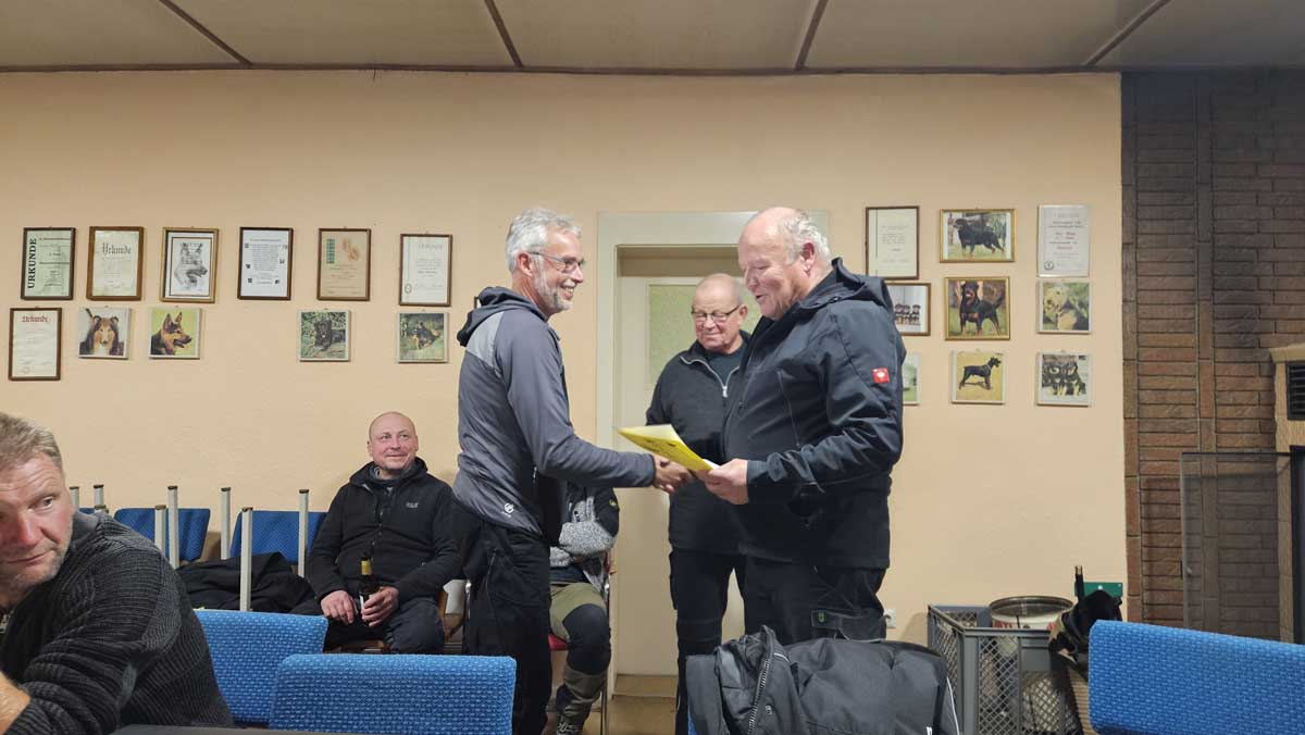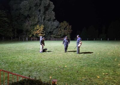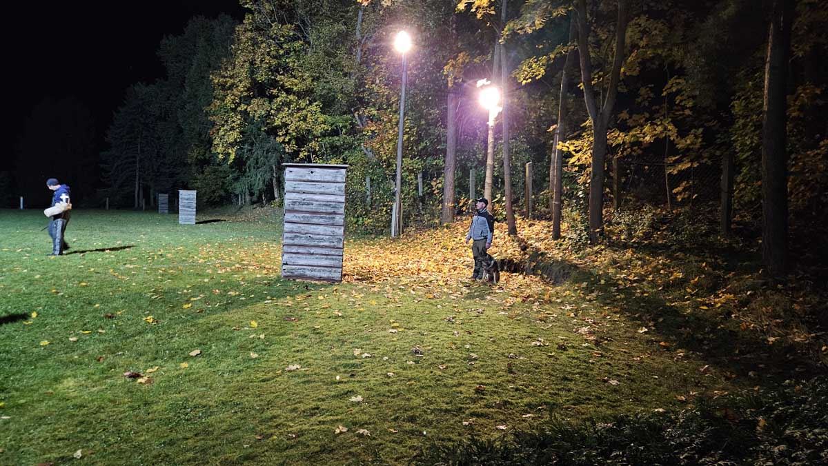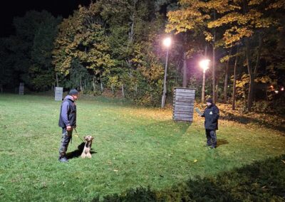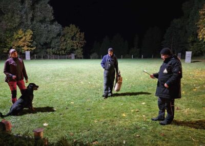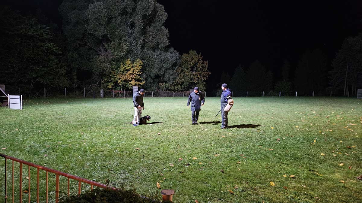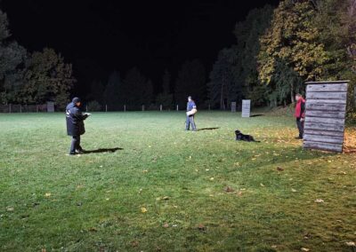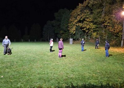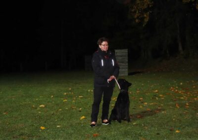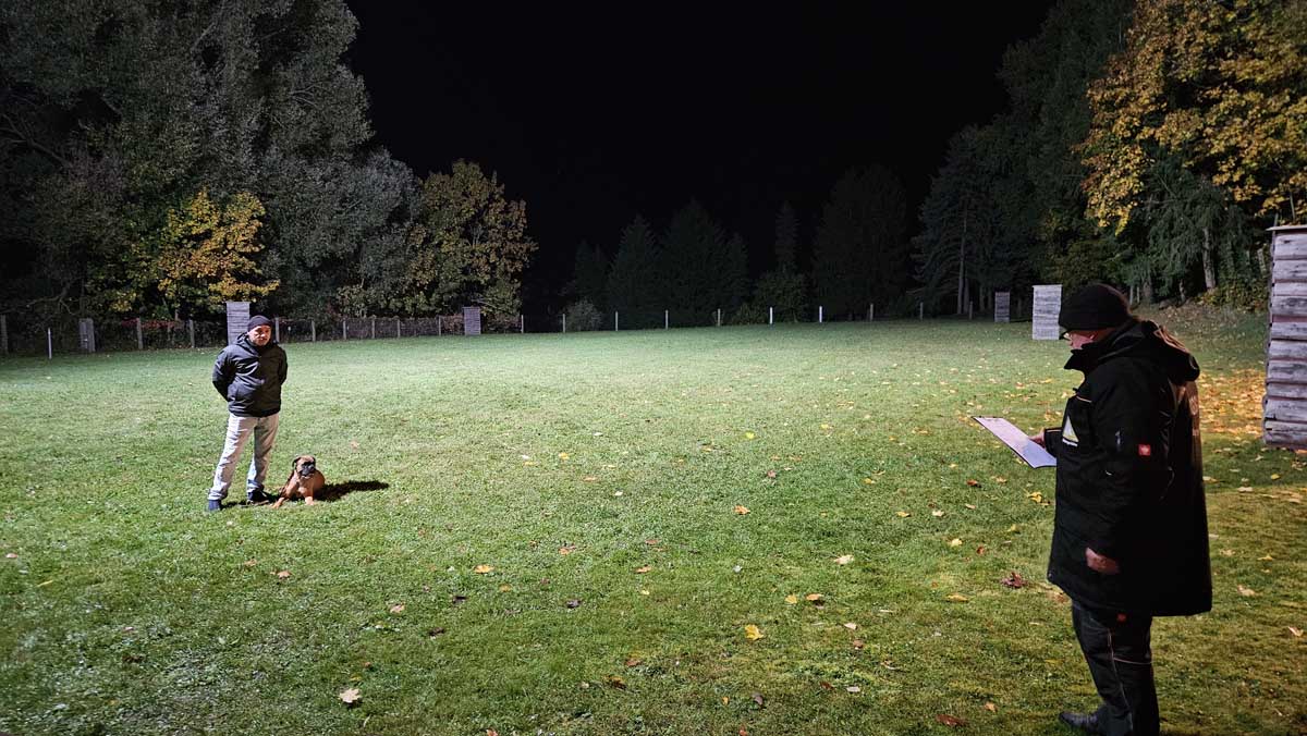 Am 18.10.2025 fand wieder unser traditioneller Flutlichtpokal „Gottfried Träber“ statt. Als Leistungsrichter begrüßten wir Holger Richter vom SGSV und die Aufgabe des Prüfungsleiters übernahm Chris Riemer. Um 17.00 Uhr startete die Prüfung, an der insgesamt 17 Hunde teilnahmen. Es ging mit den Begleithundeprüfungen los, die alle 5 Hunde souverän meisterten und somit zum Verkehrssicherheitsteil zugelassen wurden, welcher auch problemlos vonstatten ging. Es folgten die Unterordnungen der jeweiligen Prüfungsstufen, die leider nicht von allen bestanden werden konnten. Dann wurde eine kurze Essenpause eingelegt. Das Küchenteam um Roswitha Nauendorf funktionierte wieder einwandfrei und konnte die Verpflegung für alle Teilnehmer und Zuschauer sichern. Als alle gesättigt waren, ging es mit dem Schutzdienst weiter, bei dem wieder alle Hunde überzeugen konnten. Am Ende konnten alle, bis auf zwei Teams die jeweilige Prüfungsstufe bestehen. Herzlichen Glückwunsch!